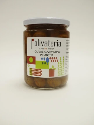 La Aceituna Gazpacha da nombre a una mezcla tradicional procedente del área mediterránea en cuya elaboración se utilizan aceitunas de tipo manzanilla, pero machacada para que absorban aún más el sabor del aliño e ingredientes tales como pepinillo troceado, rodaja de zanahoria natural de temporada, ajo maduro tradicional y seleccionada guindillas picantes cortada a rodajas.