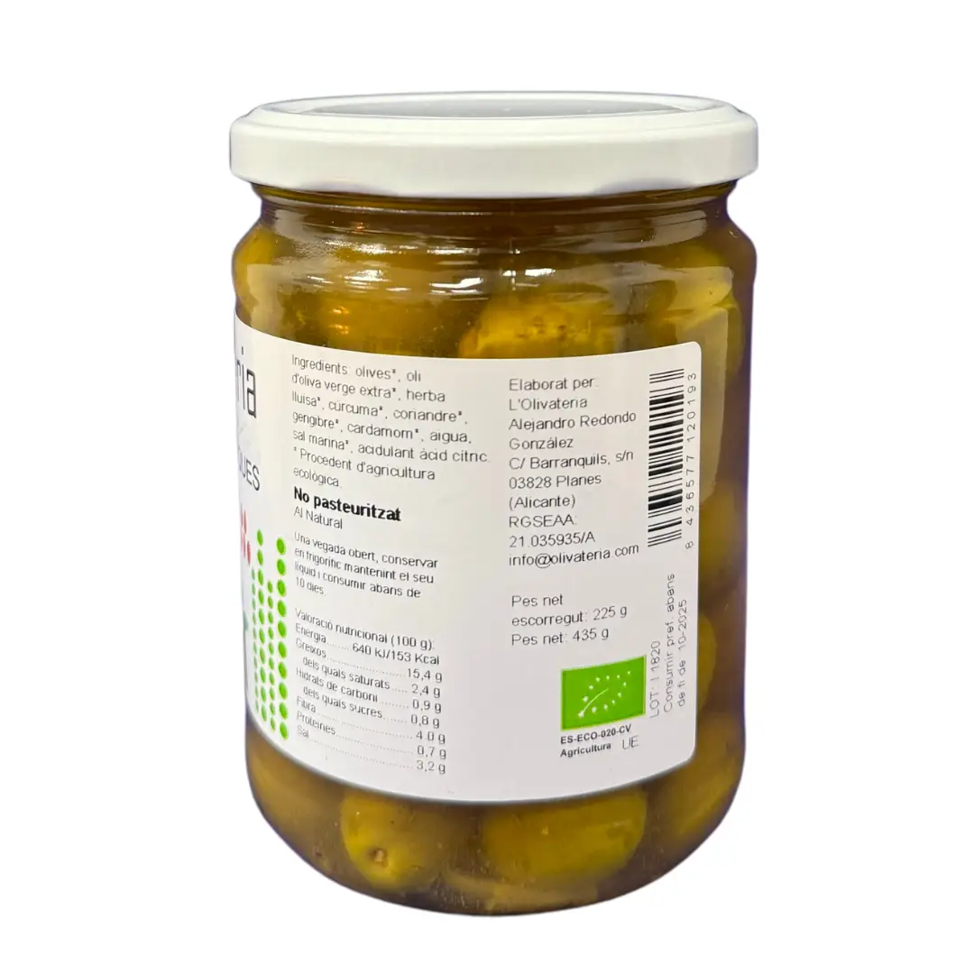 Olivas índicas Bio de autor de L’Olivateria de 435 gr: Tradición y sabor en su máxima expresión