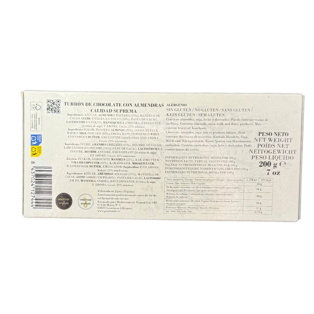 Turrón de Chocolate con Almendras Calidad Suprema Artesanal – 200 gr